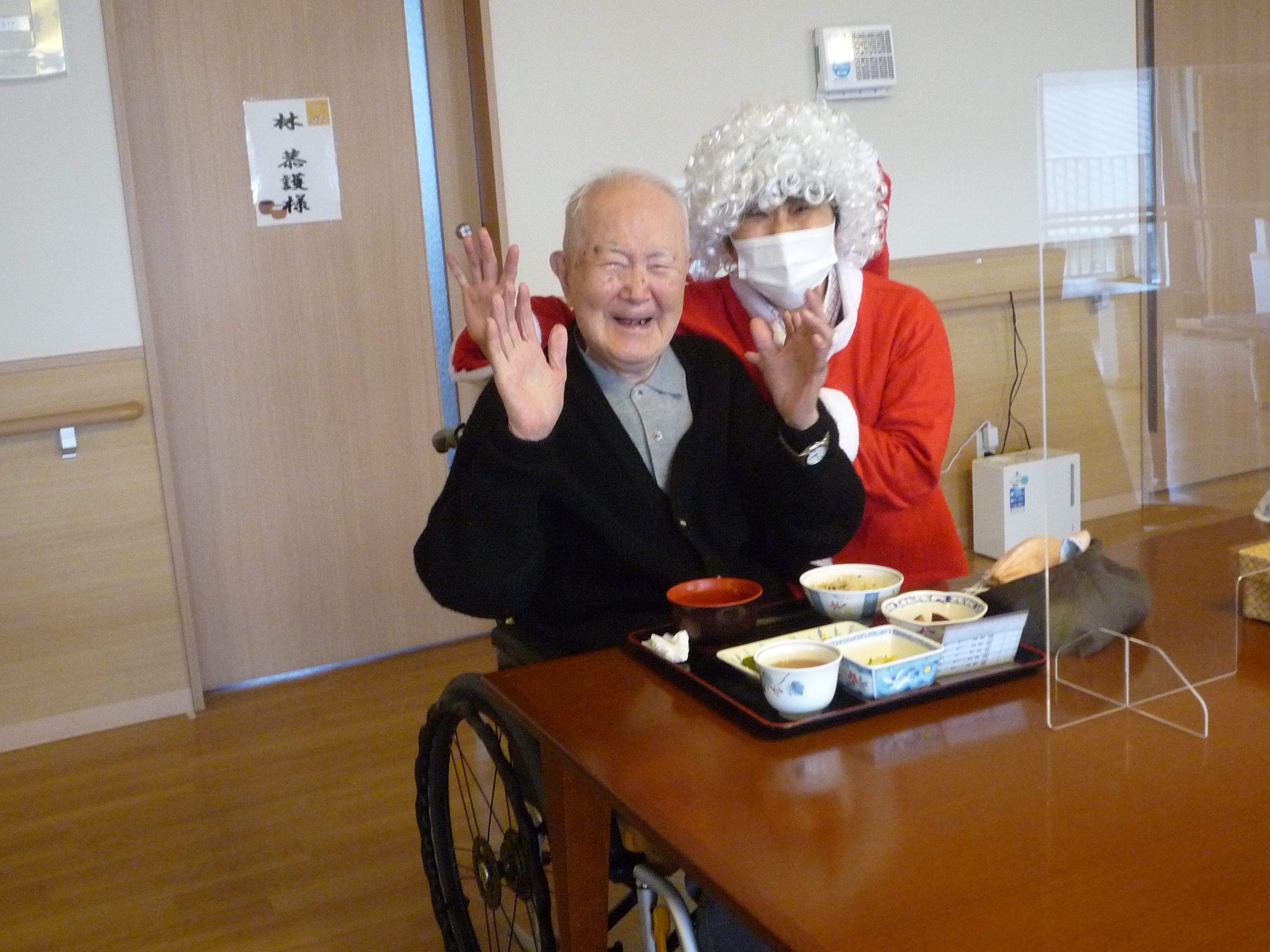 クリスマスの2日間、サンタさんが食事配膳に来てくれました🎅