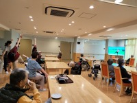 昼食前にフロアで