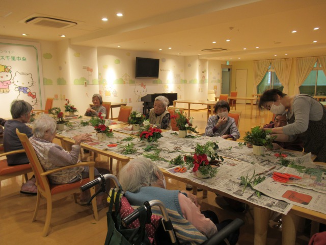 楽しみのお花教室の時間です