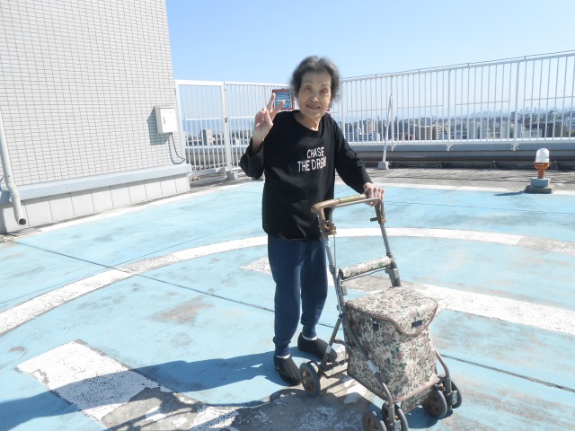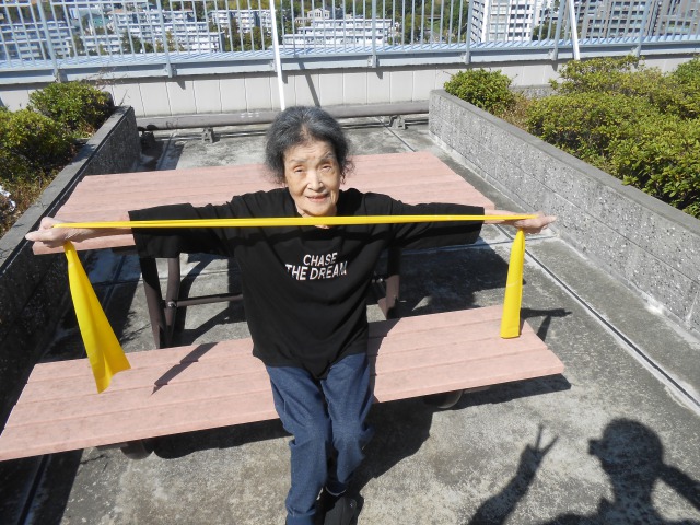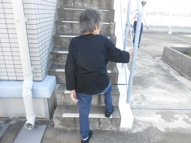 屋上でリハビリを