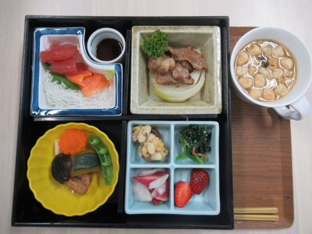 今回はお刺身と豚肉の柔らか味噌煮でした