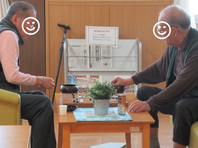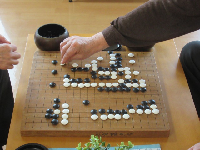 ヨガ教室の横では、いつも囲碁をしている入居者さまがいらっしゃいます