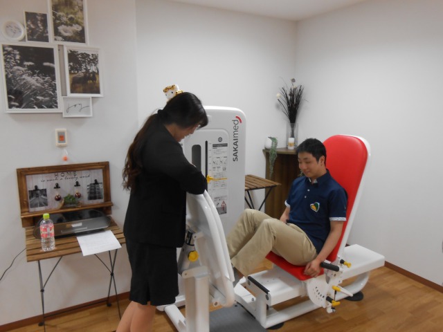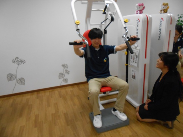 一緒にリハビリ体験をして