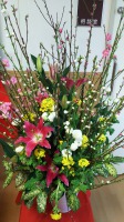 今は珍しい7段飾りを飾り、桃の花や春の花を横に飾りました。