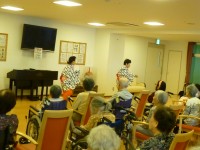 にぎやかな音楽と伝統的な芸に入居者様は大満足でした。