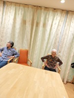 昼食前にフロアで体操を