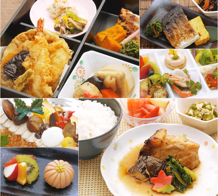 入居者様の日々のお元気にもつながるお食事は、旬の食材を活かし、健康に配慮した彩り豊かなメニューをご用意。季節のイベントごとの特別メニューやお身体の状態に合わせた介護食も個別に対応します。