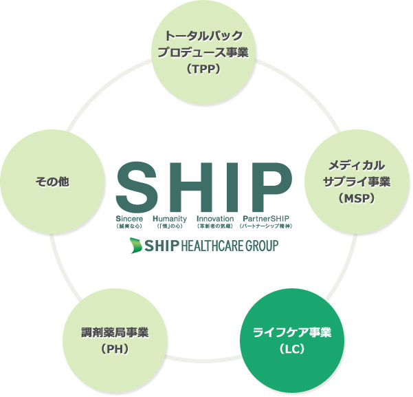 いつも相手の立場で考えて行動する「Your Company」であるために、私たちは「ありがとう」の気持ちを忘れません。互いに信頼し合えるパートナーの存在があったから、私たちは医療・保健・福祉・介護の分野で多くの実績を築くことができました。 この感謝の心は、創業時に掲げた「SHIP」理念とともに私たちがずっと大切にしてきた原点です。 同じ想いを共有するシップヘルスケアグループとともに、今後も「生命を守る人の環境づくり」に貢献し続けます。