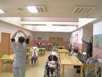 また、食事の前には皆さんで集まって、体操を行っています(^^)v