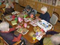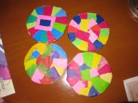 ダンボールを丸くカットし折り紙で配色を決め貼っていただきました。