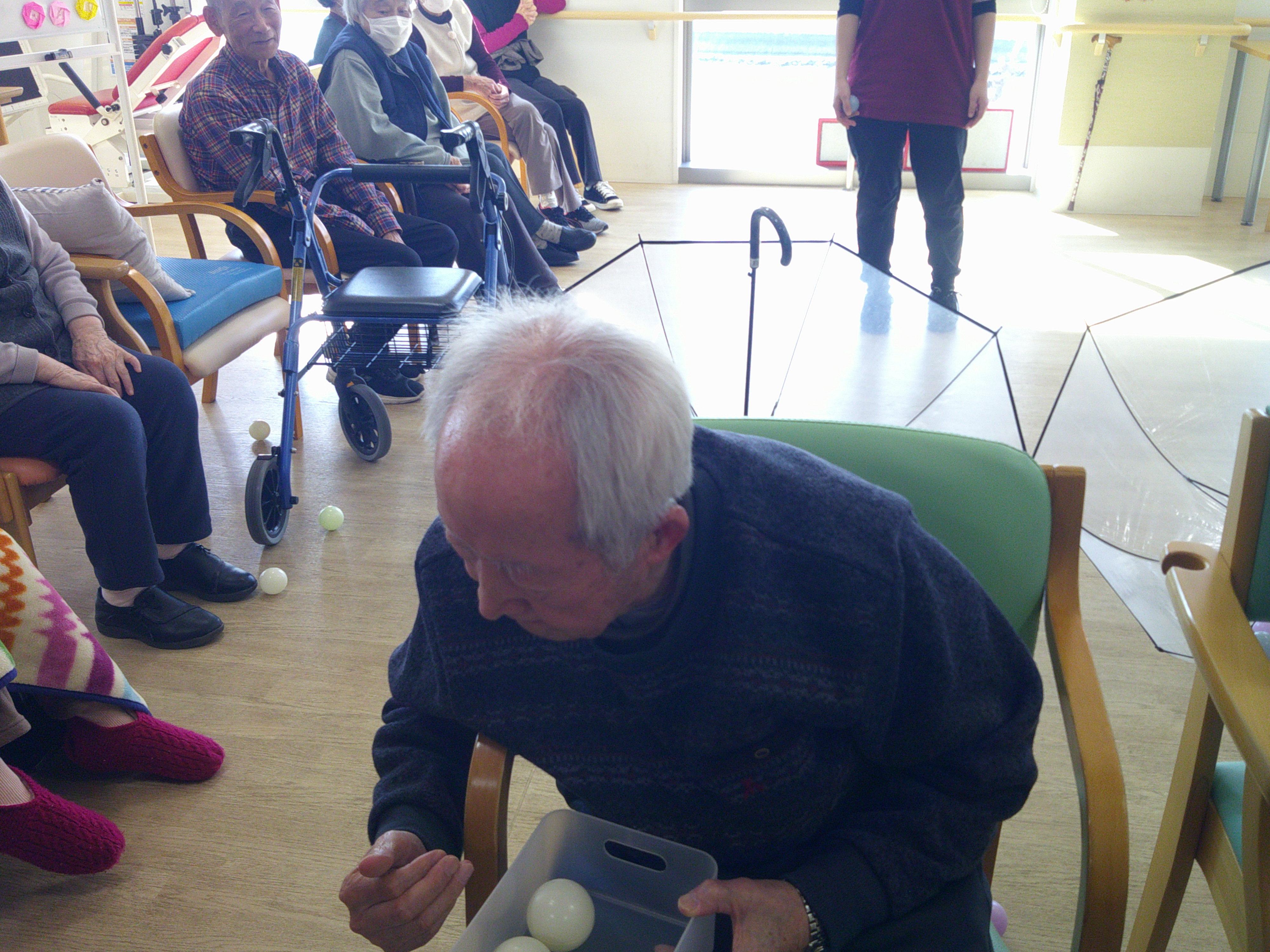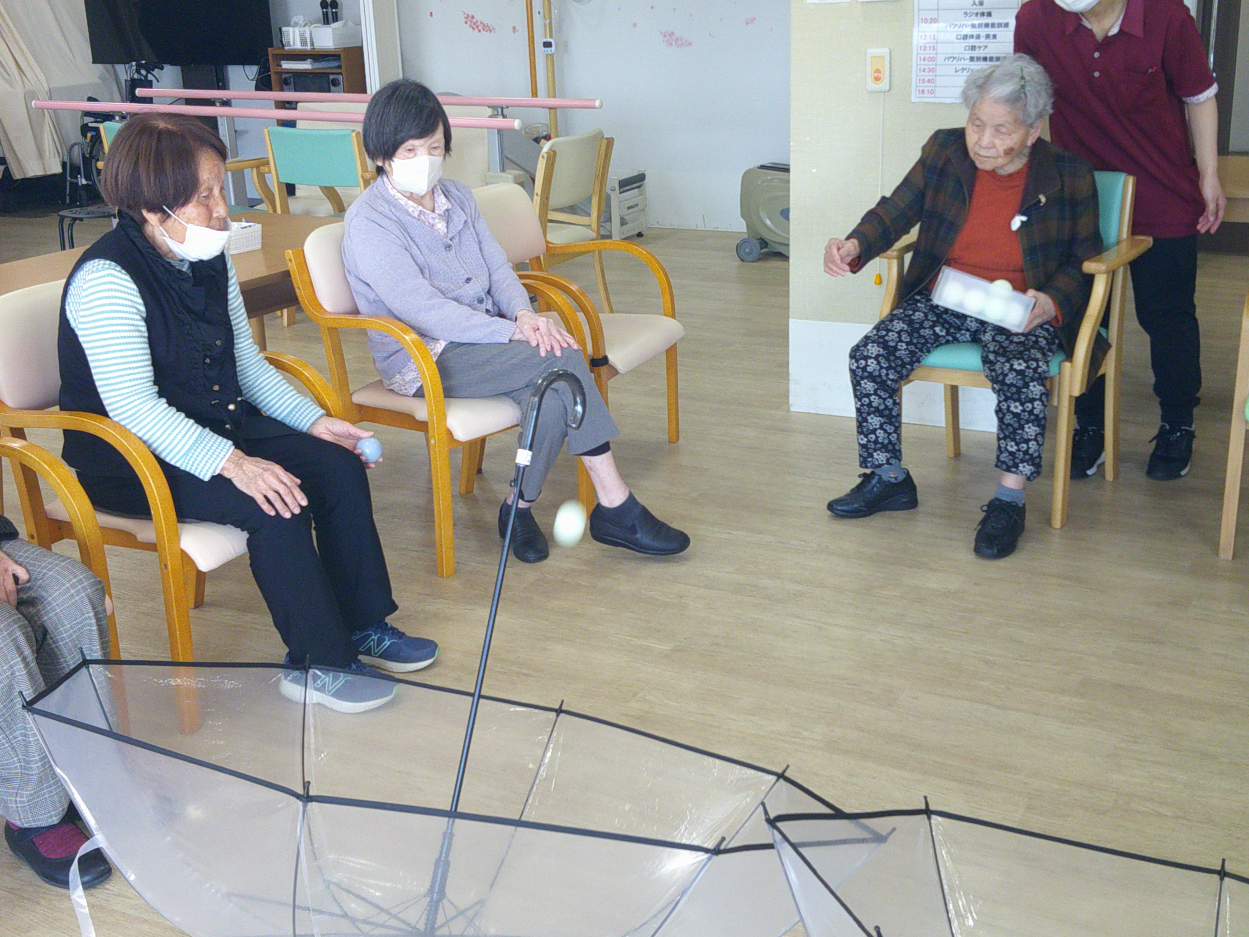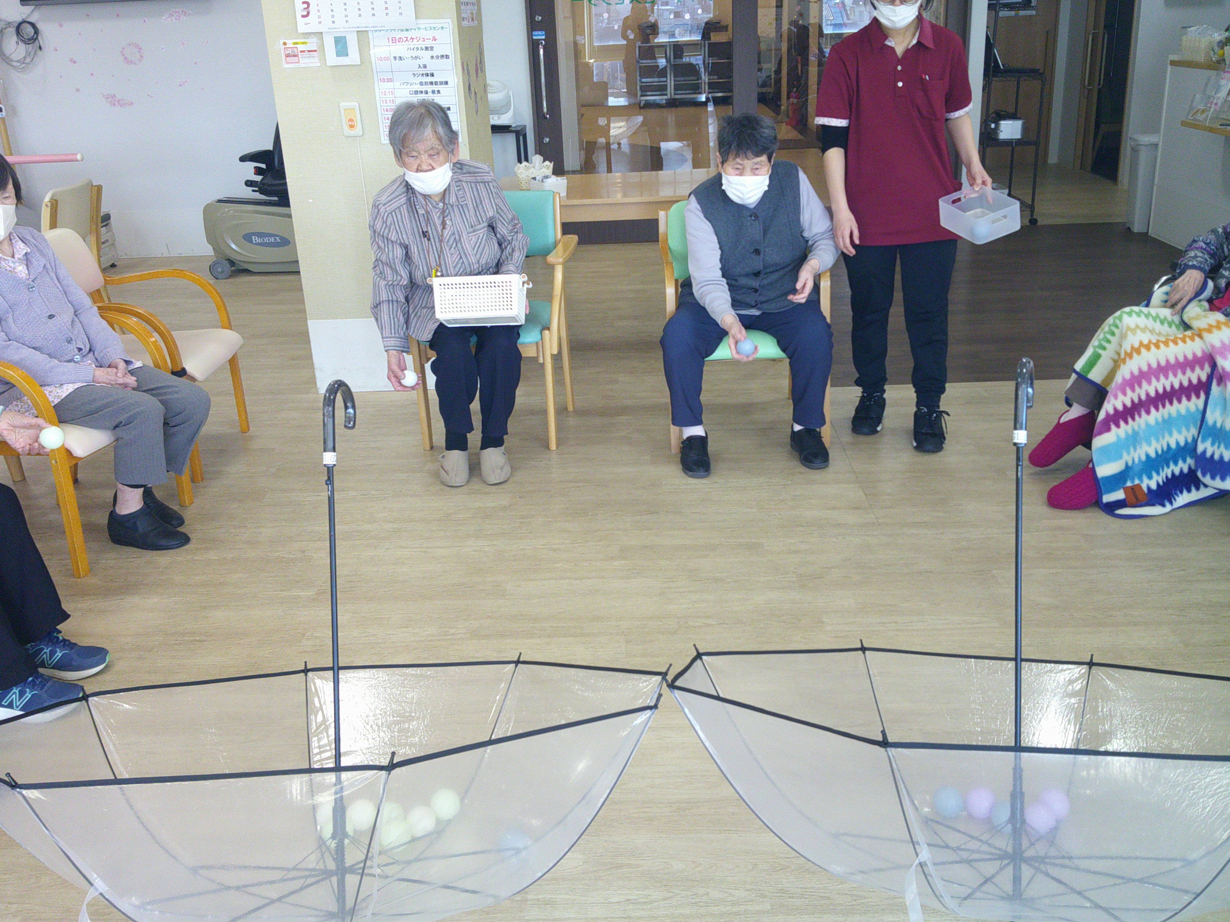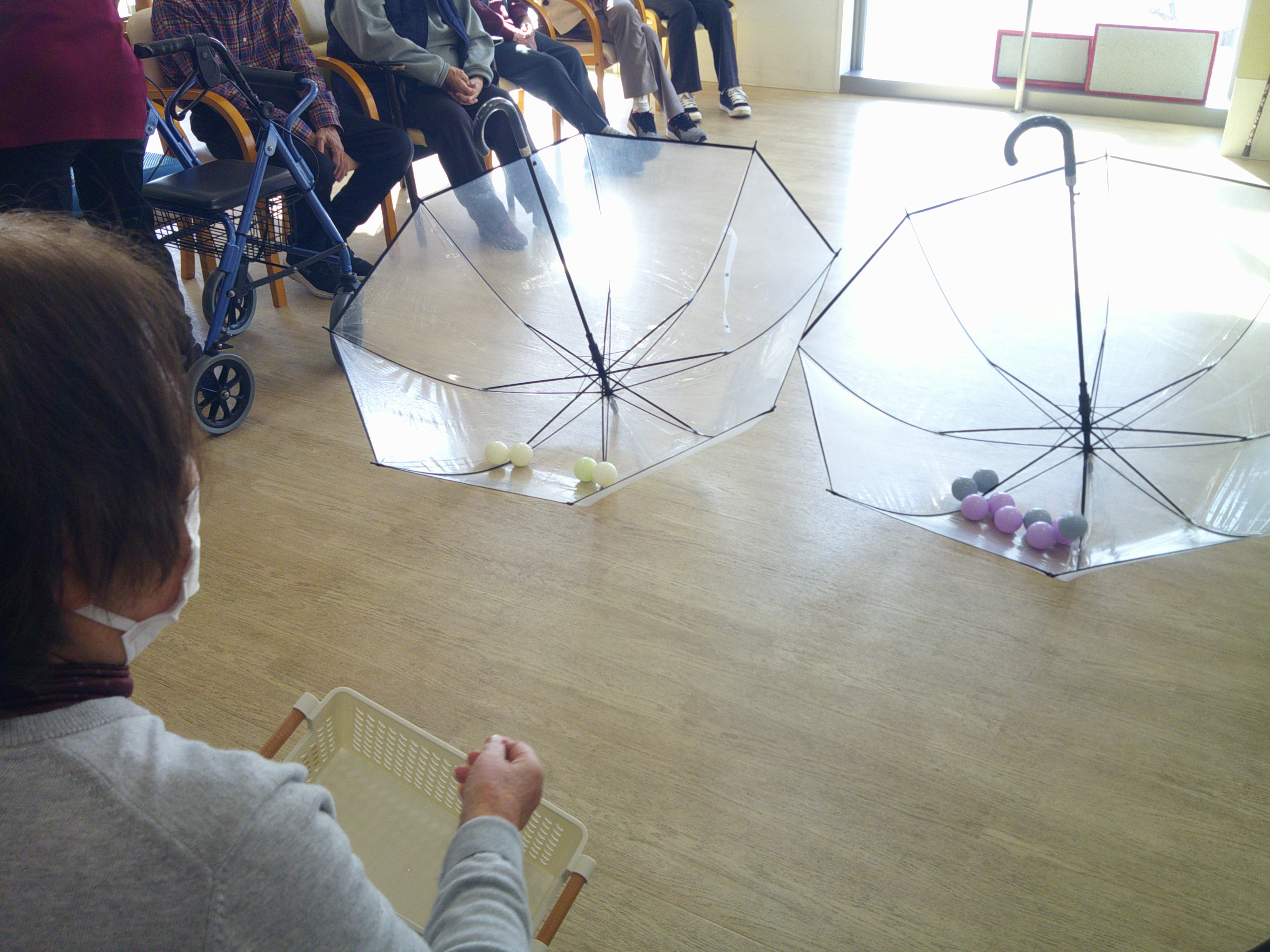 いつもは、カゴなどで玉入れを行いますが、