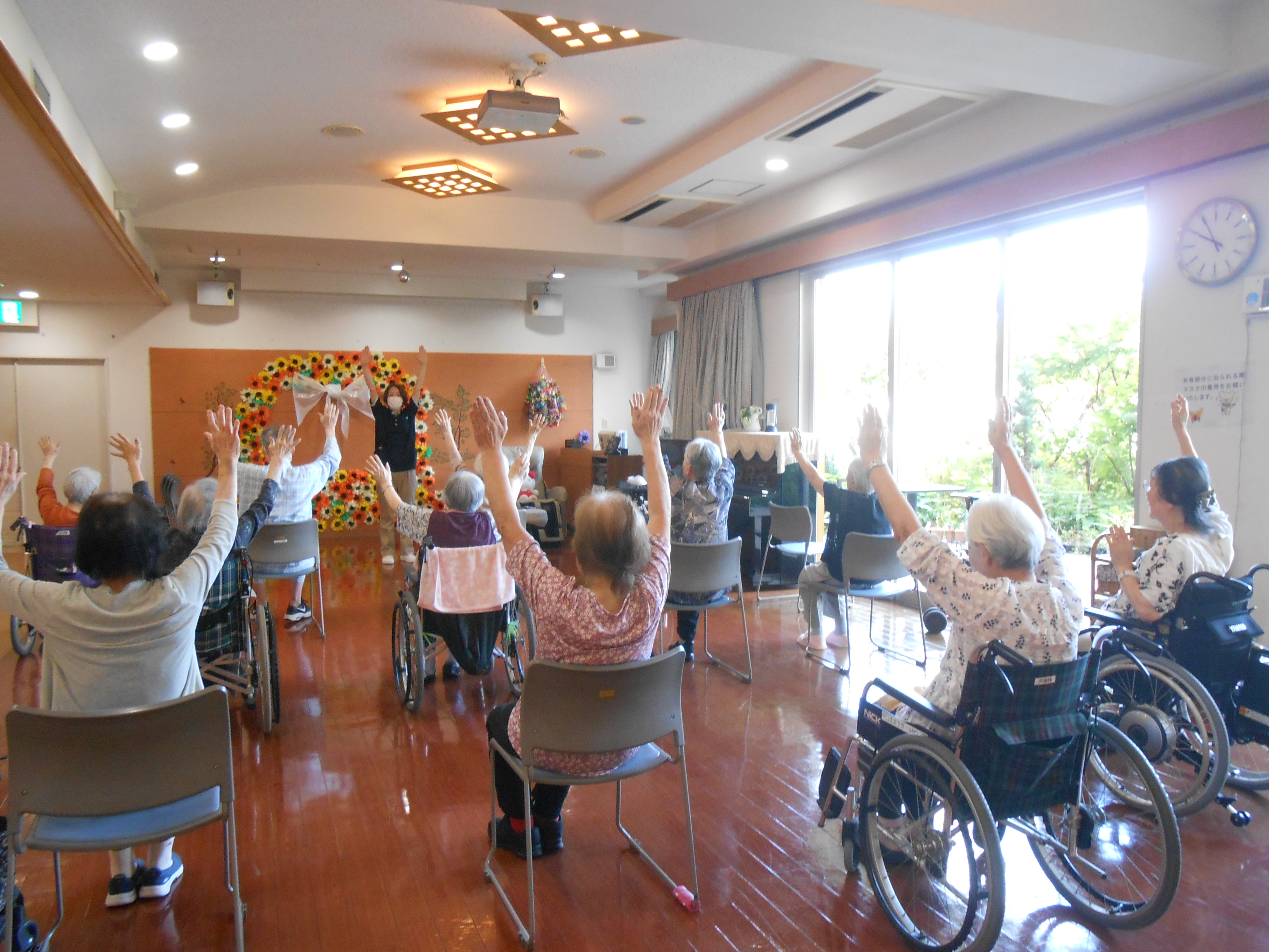 朝の涼しいうちに、外気浴を済ませて、皆様と、おはな紙で、白い花を作りました。