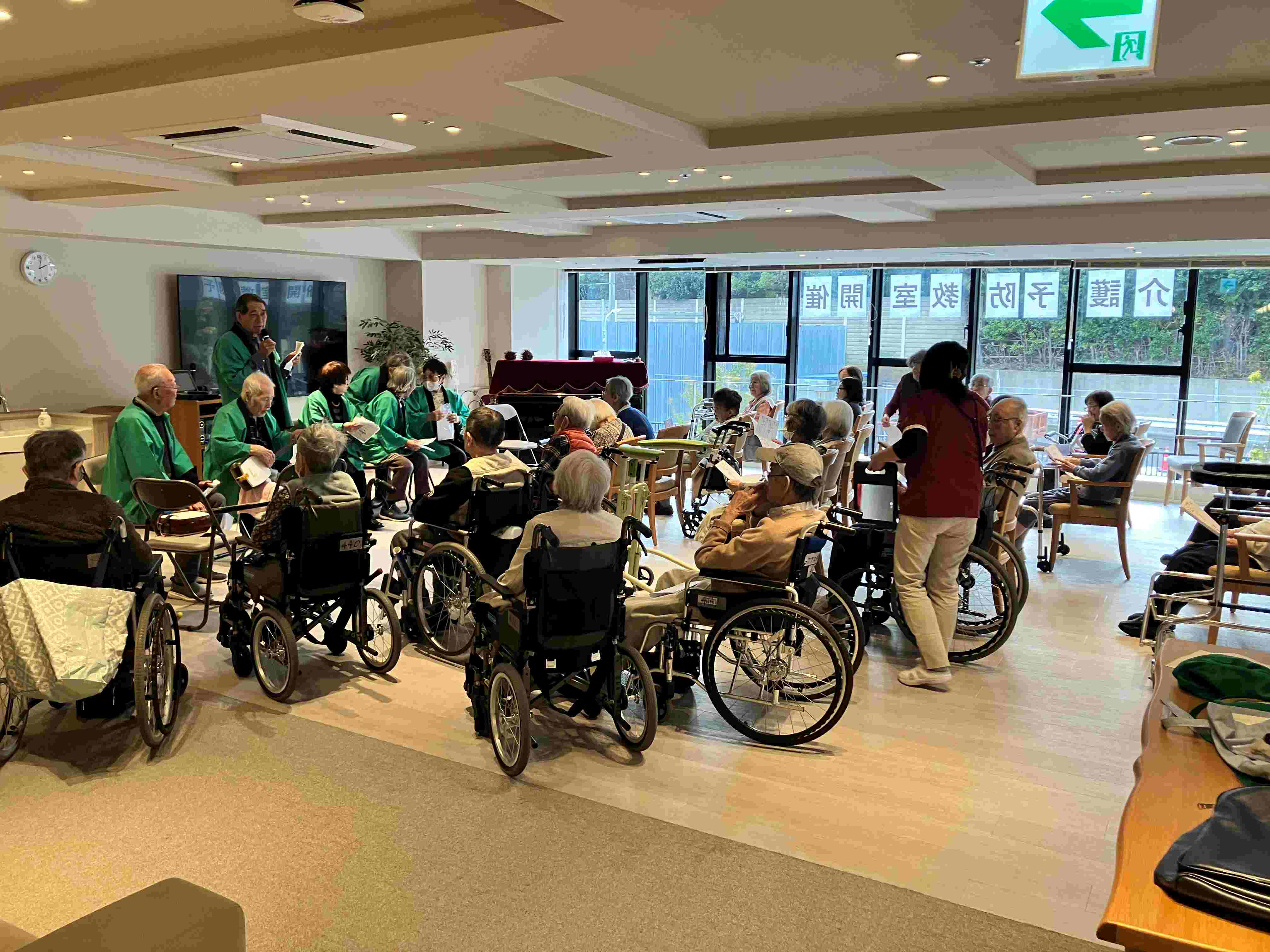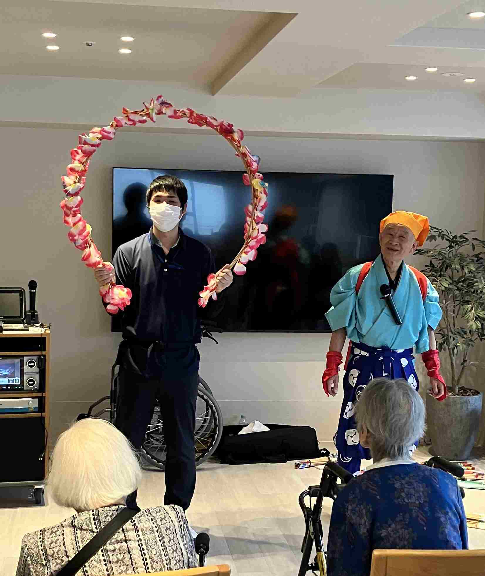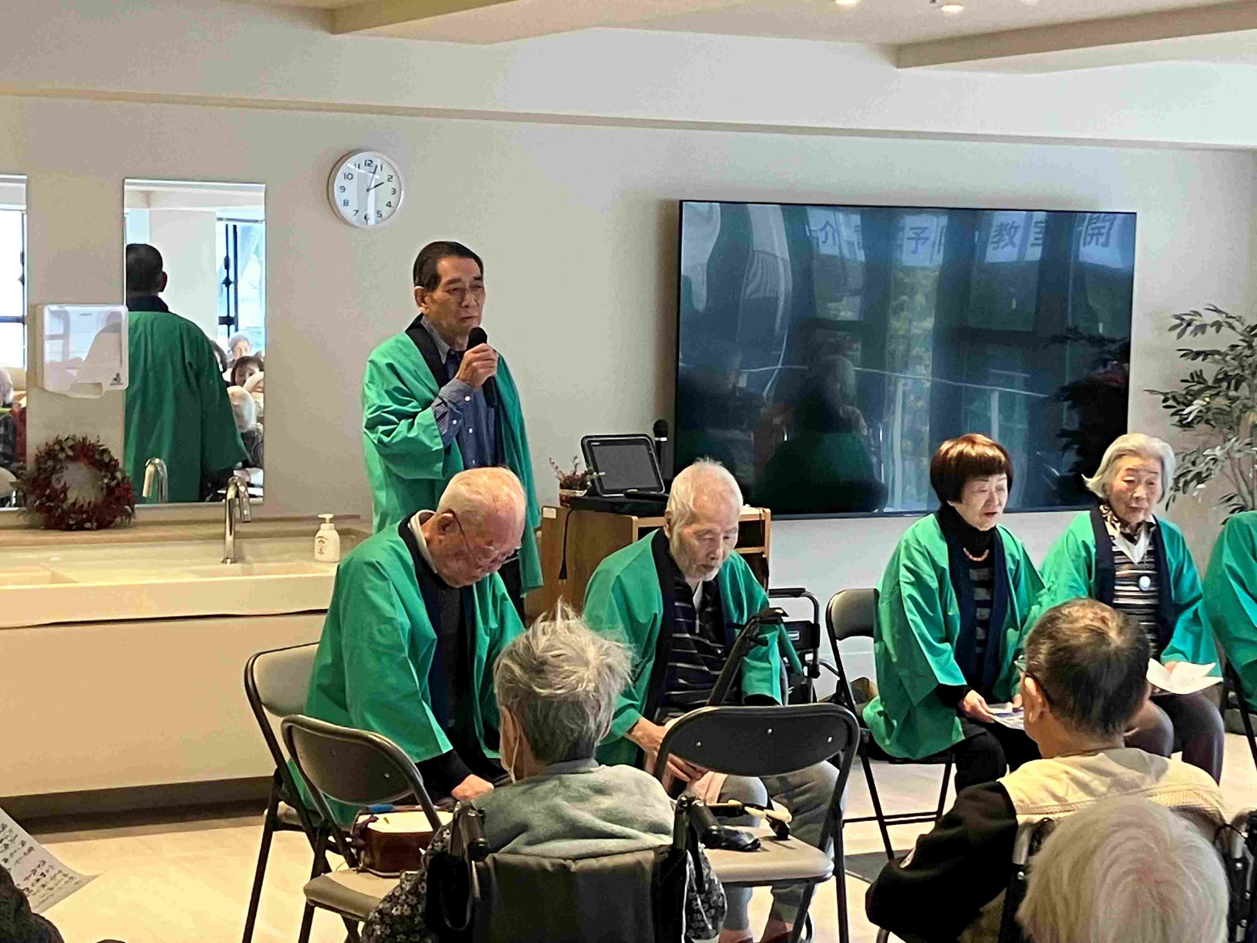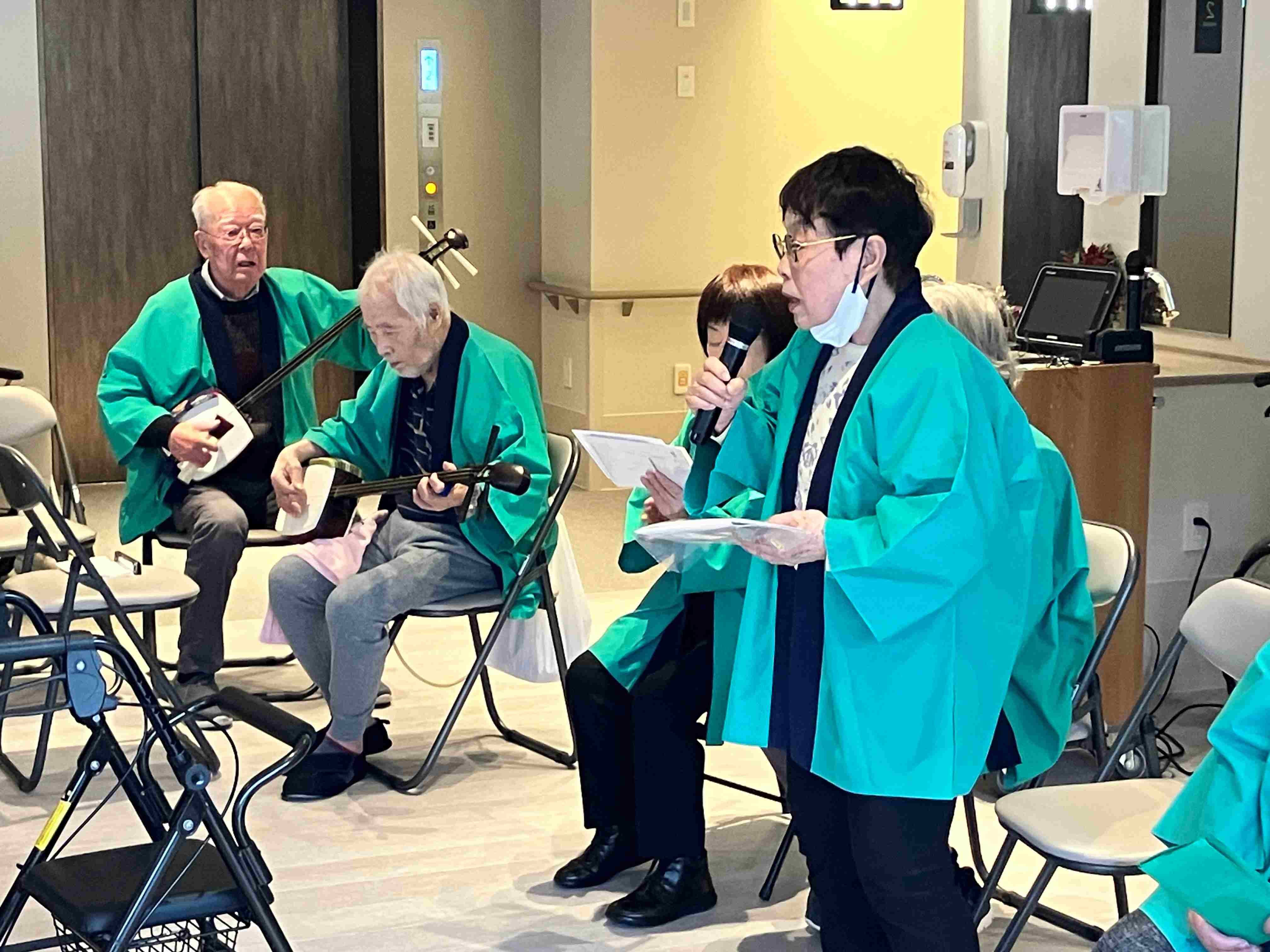 入居者の一人が民謡の会の三味線の使い手で一緒に披露してくれました。