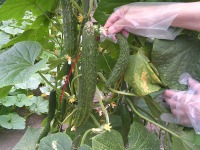 今日畑に行ってみたら、キュウリがいっぱい育っていました