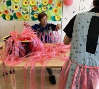 男性と女性の入居者様とスタッフの3人で、散歩に出かけられました。