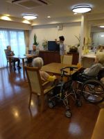 各フロアに順番に回ってくださり皆様も楽しみにされています。2階フロワでは「有楽町で逢いましょう~」と元気な歌が聴こえてきました。懐かしい昭和歌謡は人気です。午前中に声を出して昼食も美味しくいただけそうです!暑い中来てくださるボランティアさんには感謝です(人”▽`)ありがとう☆