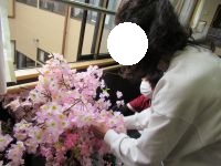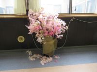 2Fホールにも桜を飾ろうと花瓶の中に桜を挿しているとM様が剪定に来てくださいました。