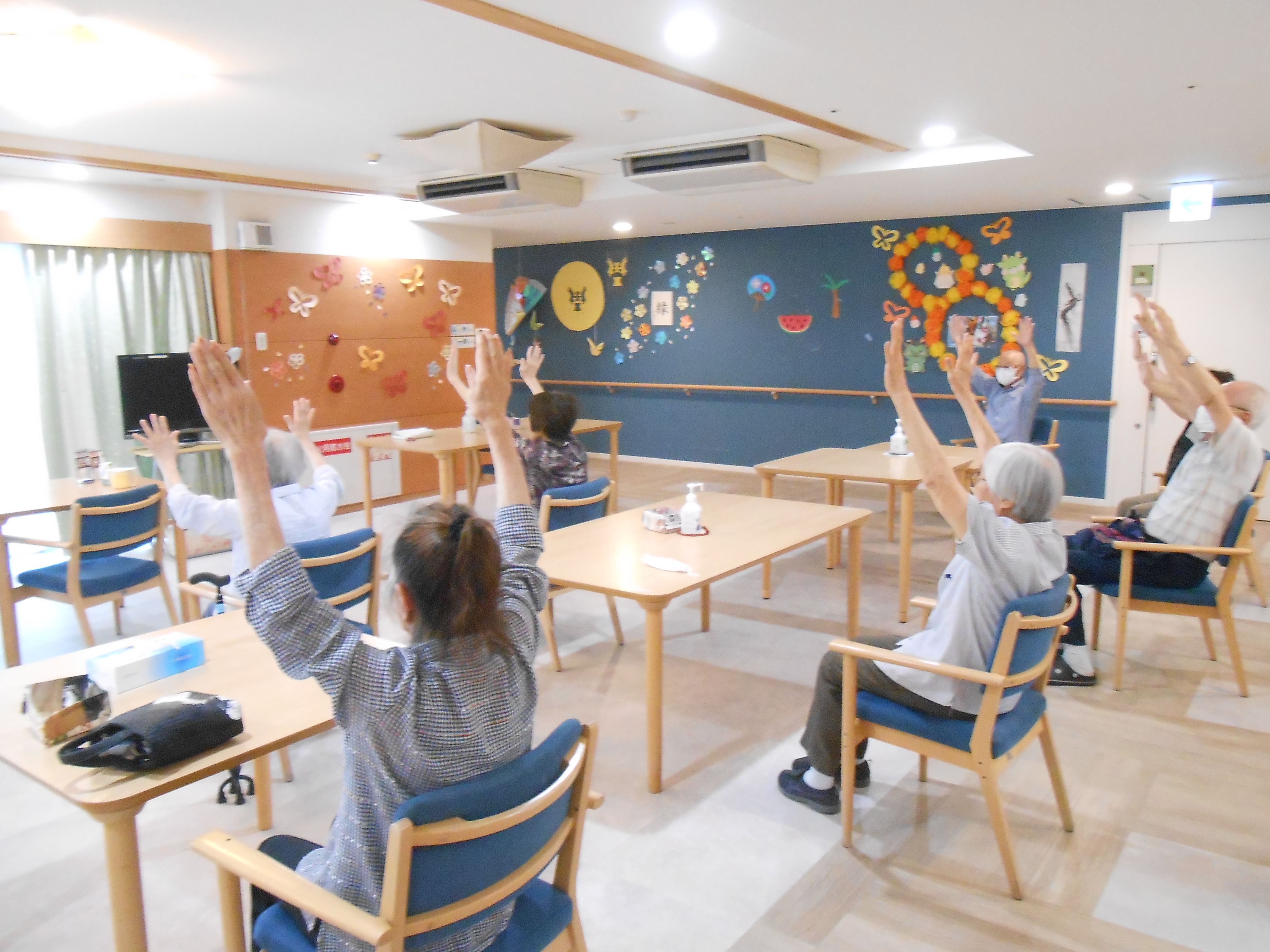本日は、スタッフと入居者様で一緒にひまわりの壁飾り作りを行いました。