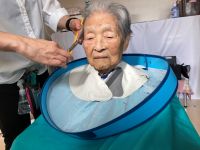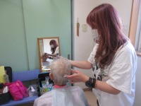 6名の入居者様がカットや顔そりを施されました。