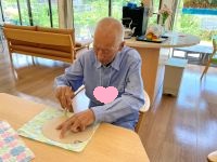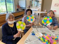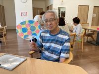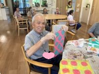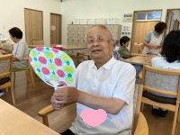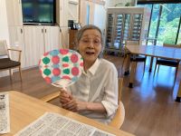 デイルーム内には手作りの風鈴🎐やお祭り提灯🏮、スイカ等、賑やかに飾り付けています。