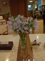 アガパンサスを伐って花瓶に挿してテーブルに飾りました。