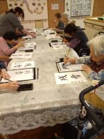 お題は「残雪」です。二文字ですが画数が多いです。皆様は真剣にお手本を見ながら描かれていました。今日もお気に入りを一枚提出していただきました。