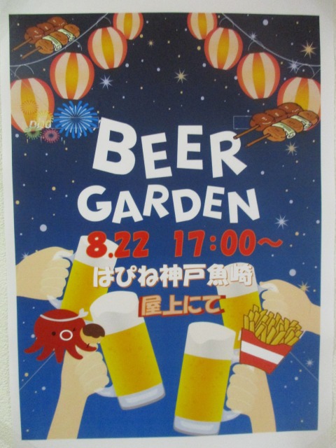 8月22日の金曜日の17時から、はぴね神戸魚崎屋上にて【ビアガーデン】を開催します‼
