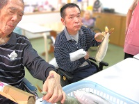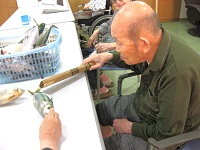 スタッフお手製の釣り竿で魚釣りゲームをしました。