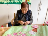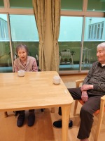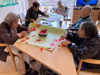 外もお花が咲いてきましたので、お部屋の中も春らしく壁飾り作りを入居者様と作りました。