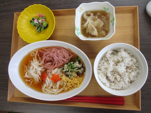 天の川そうめん、梅しらすごはん、豚肉のみぞれ煮、スイカのロールケーキでした!