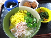 昼食には「そうめん」が用意され夏らしさを感じる昼食となり、職員からのサプライズで・・・
