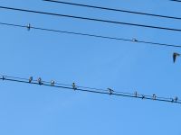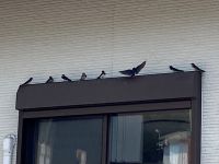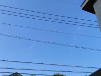 グループホームのシャッターや電線に止まって、賑やかな鳴き声が響いています。