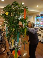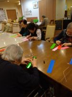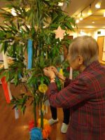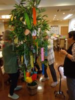 短冊に願い事を書いて飾っていただきました。一番多かったのは今年も「健康」「家族の健康」「世界平和」「美味しいものが食べたい」でした。「コロナや感染症が二度と流行しないように」これはスタッフの願い事でした。笹の葉に短冊を飾っている皆様は童心にかえってお顔がいきいきしていました。皆様の願い事が叶いますように・・・!