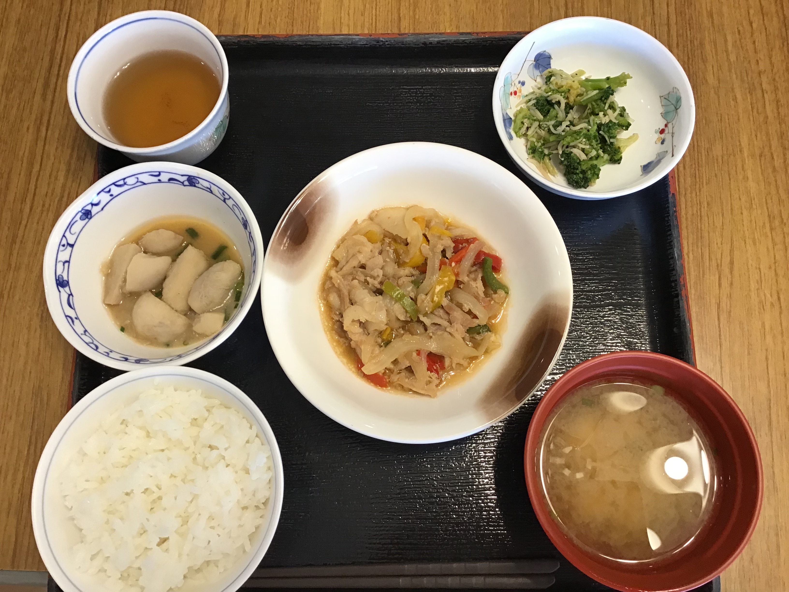 献立のメニューは、豚肉の甘辛炒めと里芋の煮っころがし、ブロッコリーのしらす和えです。