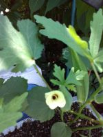 オクラ一本収穫しました。他にミニトマト🍅と枝豆も実をつけています。今年は最初から日当たりの良い所に置いて良かったです。野菜の成長を見られるのも嬉しいものです(^^♪)