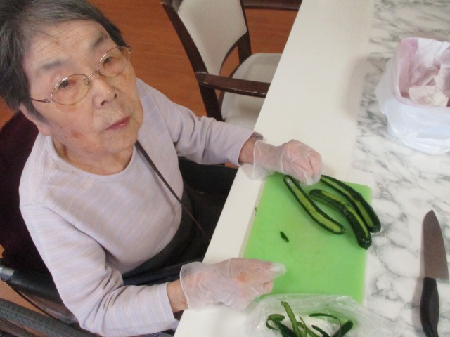 今日もきゅうりがた~くさん採れました‼皮をむいて、切って、揉んで、おいしいお漬物が出来ました(*’▽’)素早い、慣れた手つきが素晴らしい!あっという間に作ってくださいました\(^o^)/ありがとうございます‼おいしくいただきましょうね‼