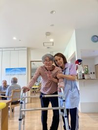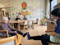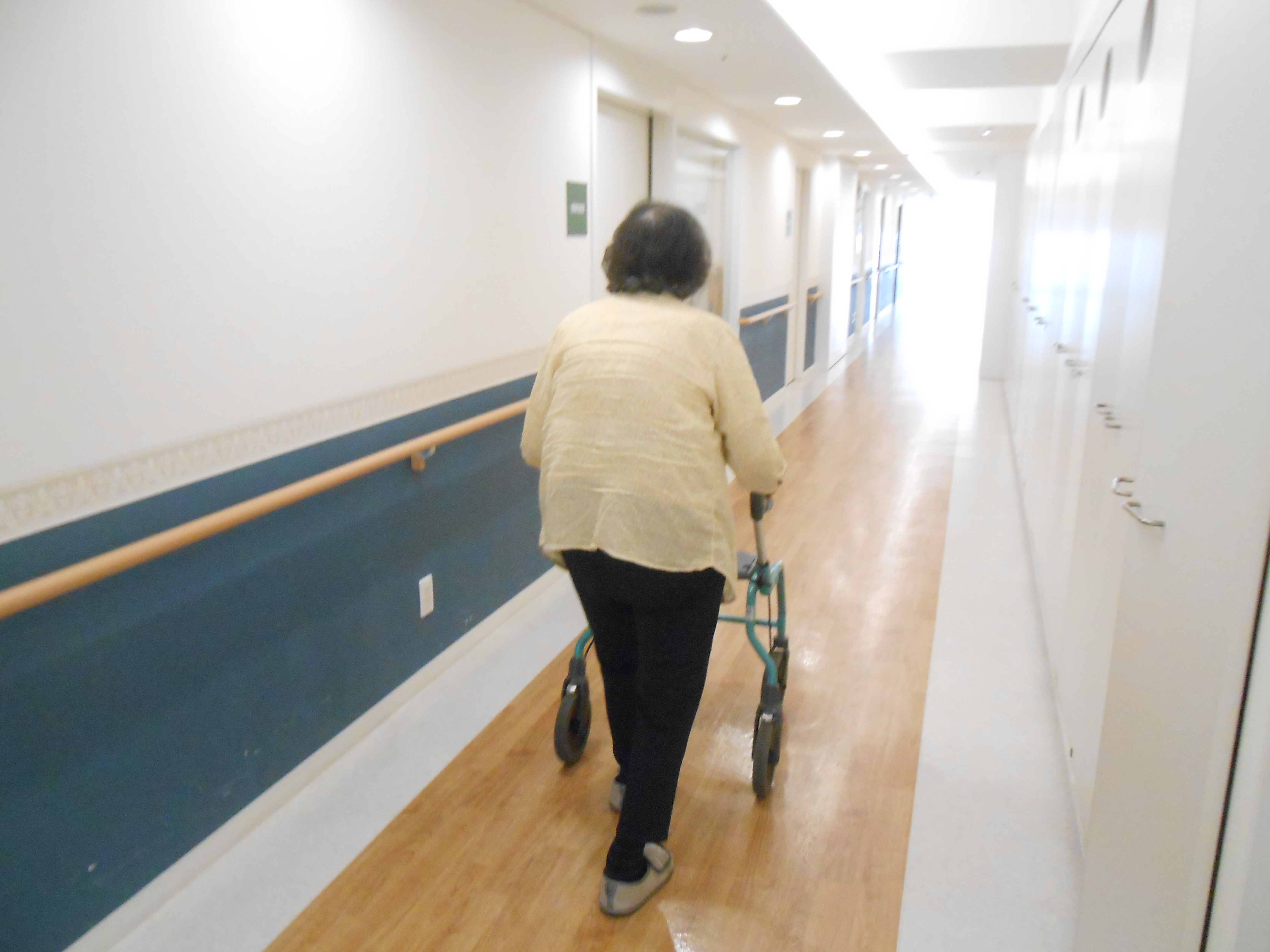 【グループホーム】今日はあいにくの雨、外に散歩にでられないため。皆さんで屋内にて歩行訓練を行いました