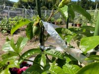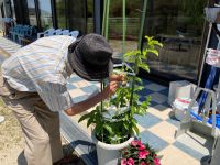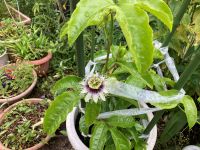 真夏以上の暑さの中、スタッフの持ってきたパッションフルーツの花が咲き始めました。