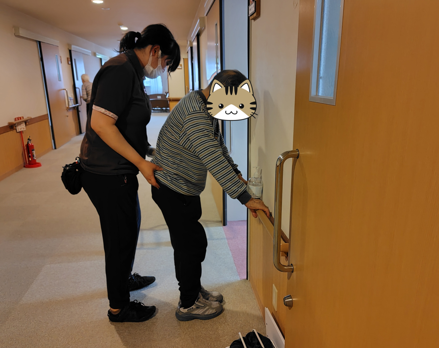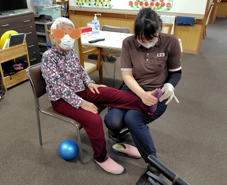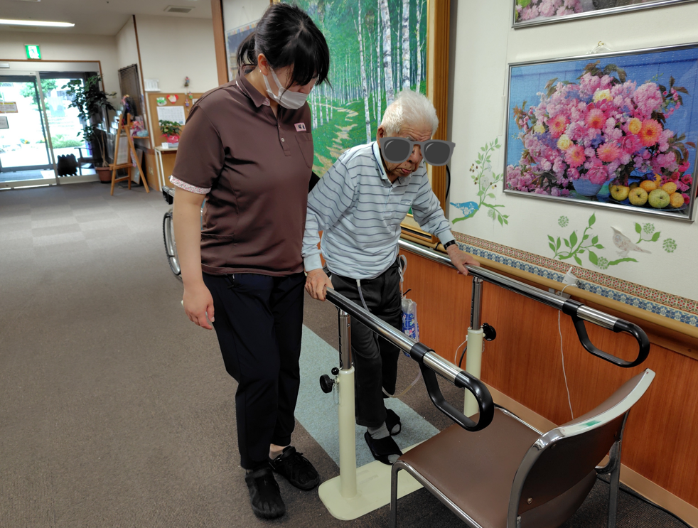 今回は個別の歩行訓練、可動域を広げるストレッチ、立位安定を維持するための訓練など
