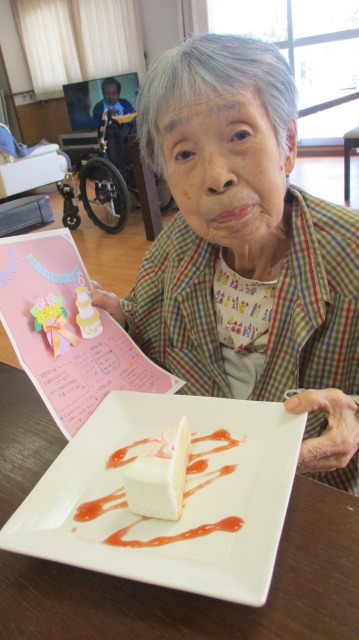 今日は入居者様のお誕生日です🎂スタッフ手作りのバースデーカードをお渡しすると、ニッコリ「ありがとう」とおっしゃってくださいました(*^-^*)今日は住吉川公園の桜がついに満開に!!ケーキを食べお祝いした後は【お花見】にも出かけました!!今年もたくさん笑って過ごしていただきたいですね(^^)/おめでとうございます🎊