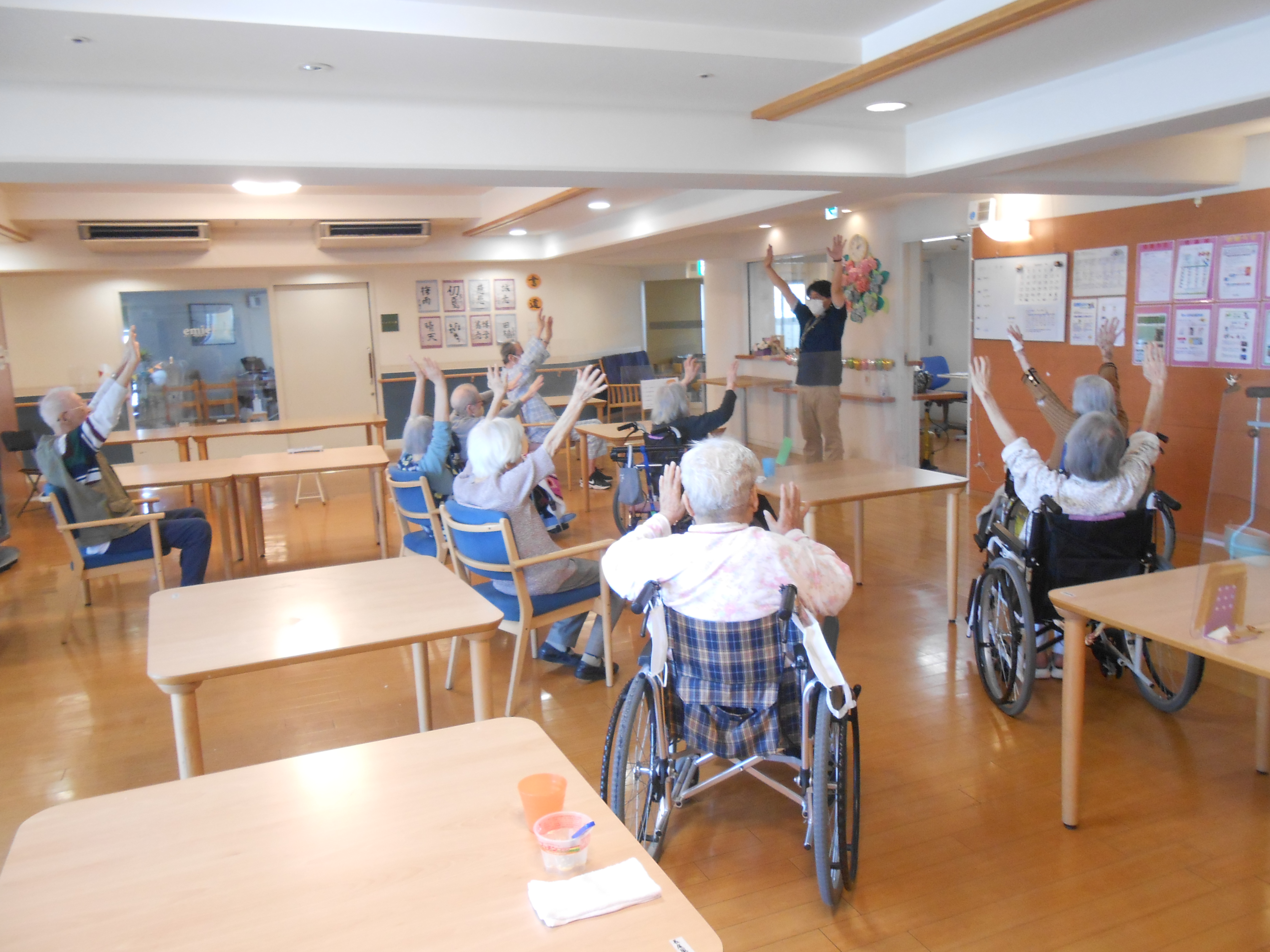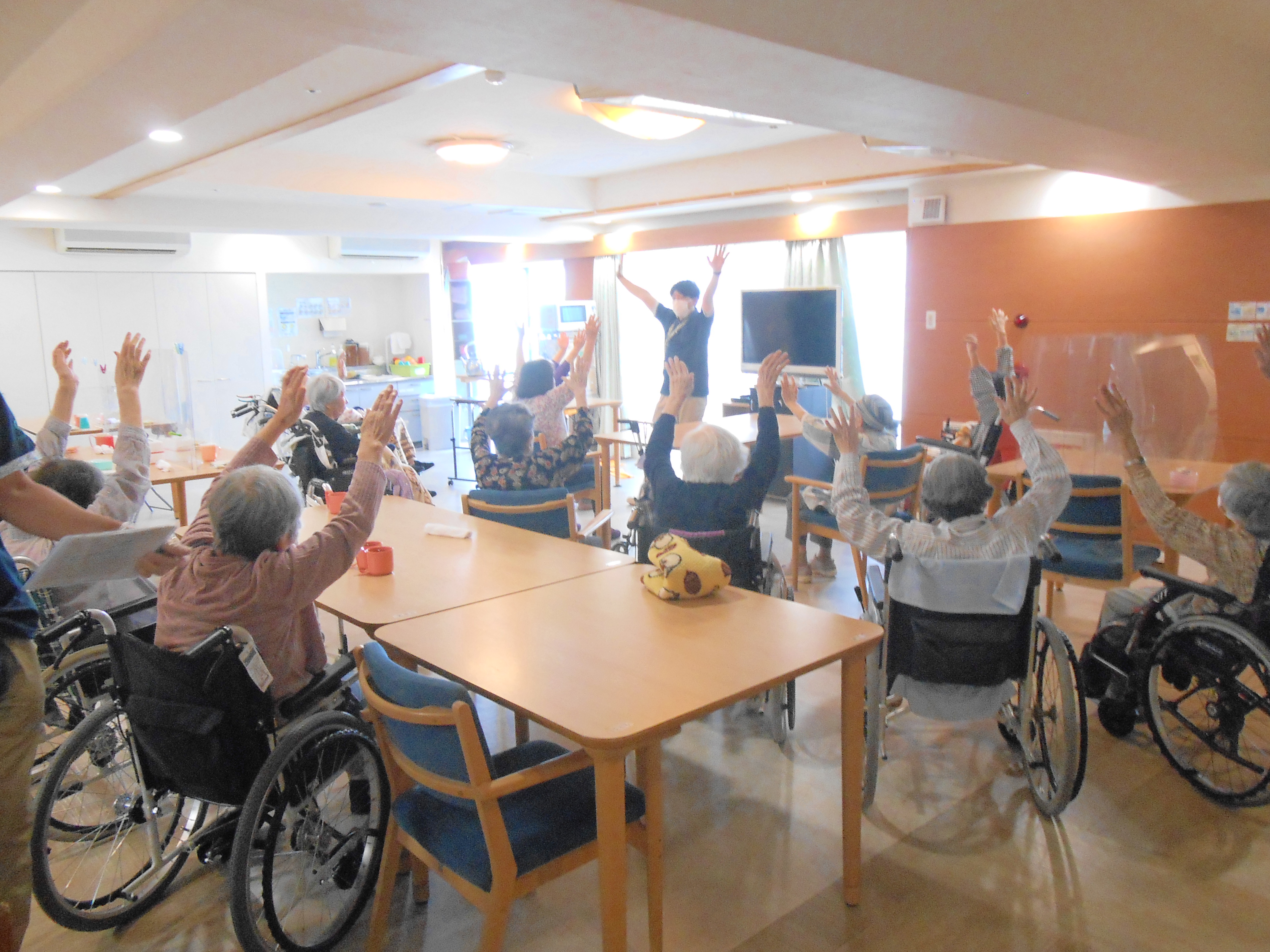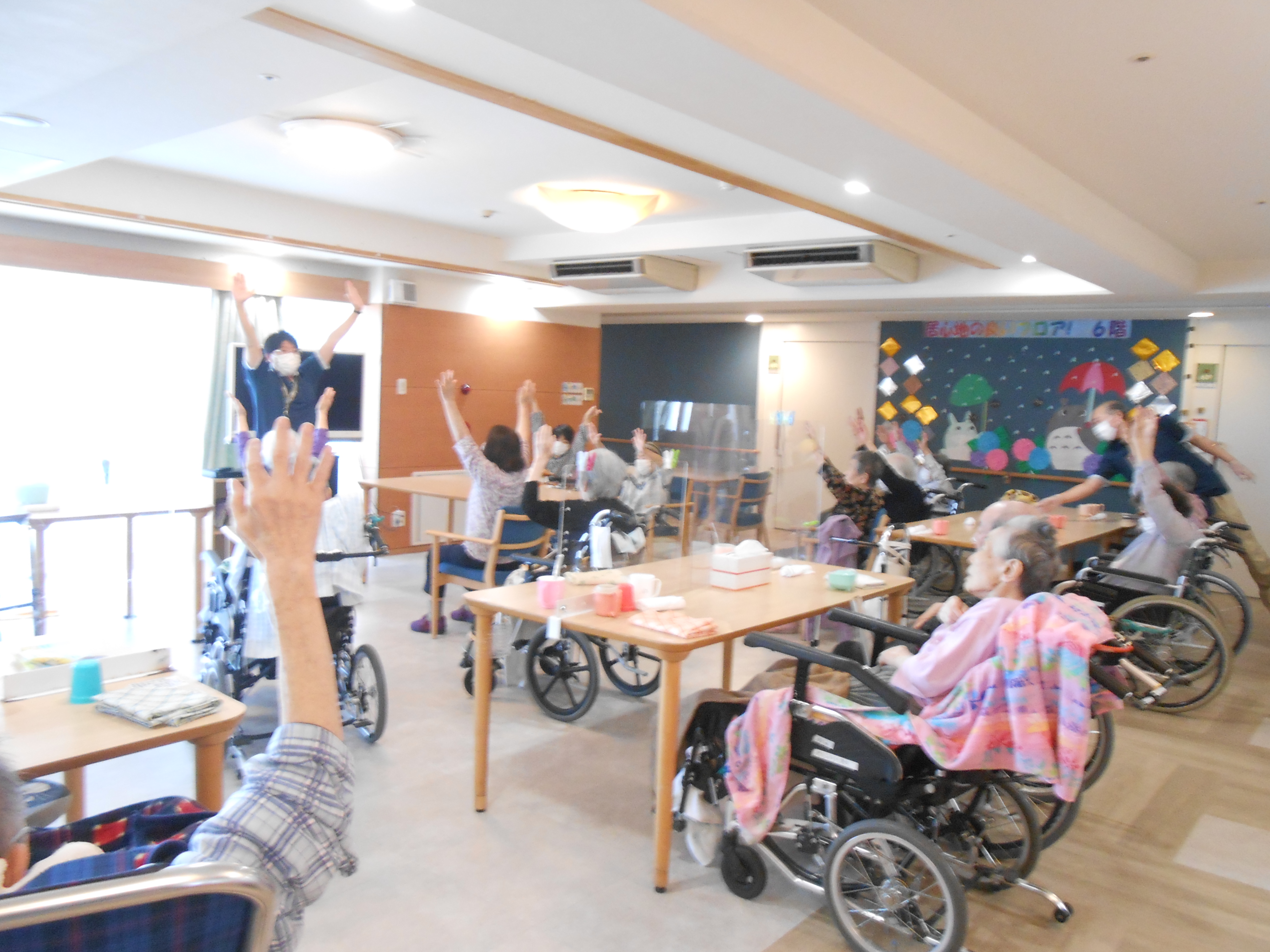 ゆったりとした音楽に合わせて、身体をほぐすようにゆっくりと体操を行っていただきました。