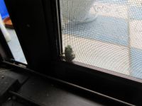 スタッフが見つけて網戸を右に左に動かしますが、なかなか思うようにいきません。