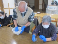 こんにちはデイサービスです。本日のレクは料理教室ということで「ゴマときなこのおせんべい」を作りました。