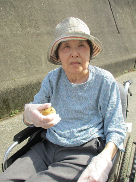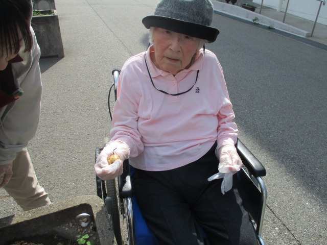玄関前でじゃがいも掘り!! コロコロとかわいいじゃがいもが収穫できました(≧▽≦)