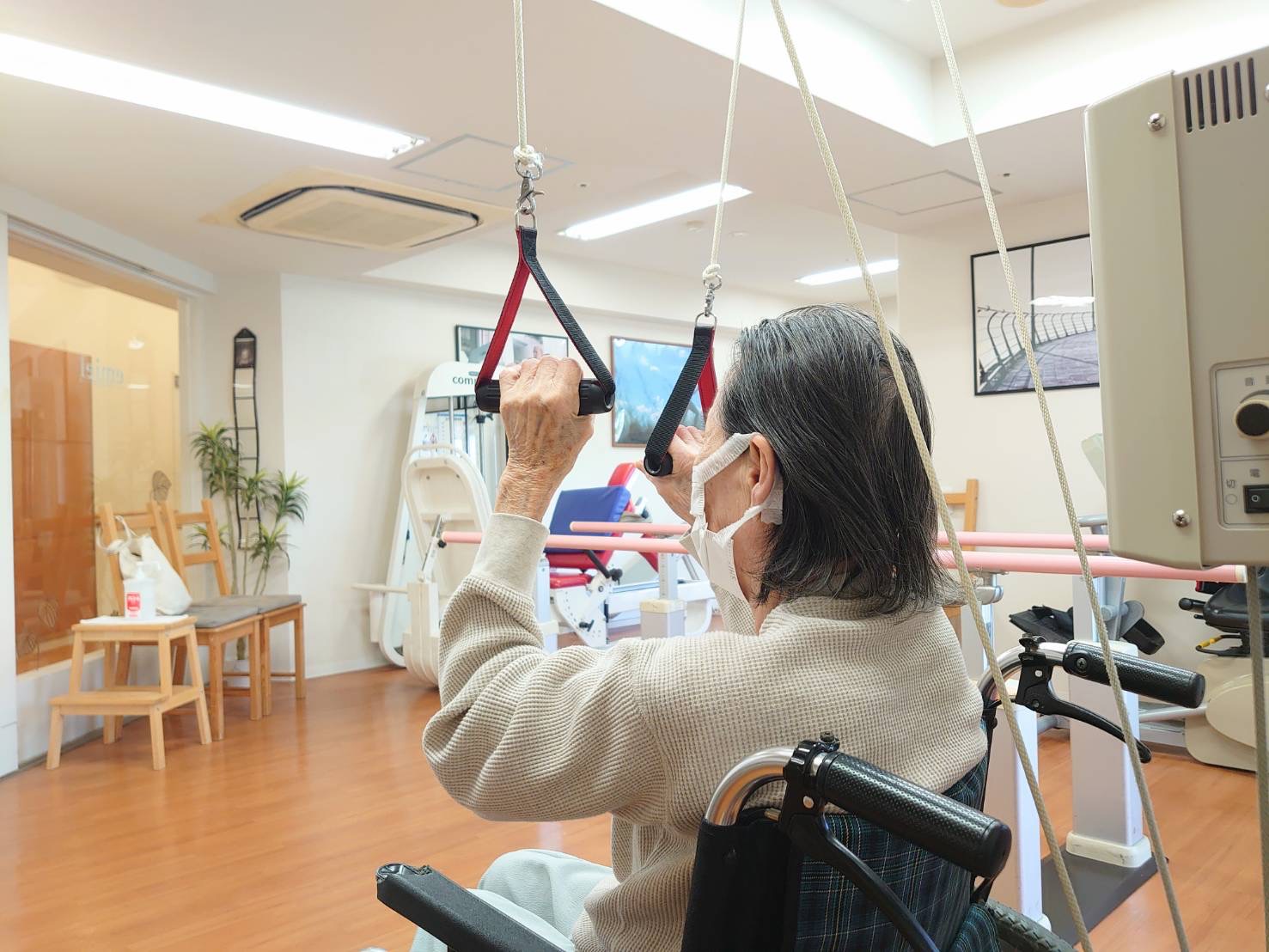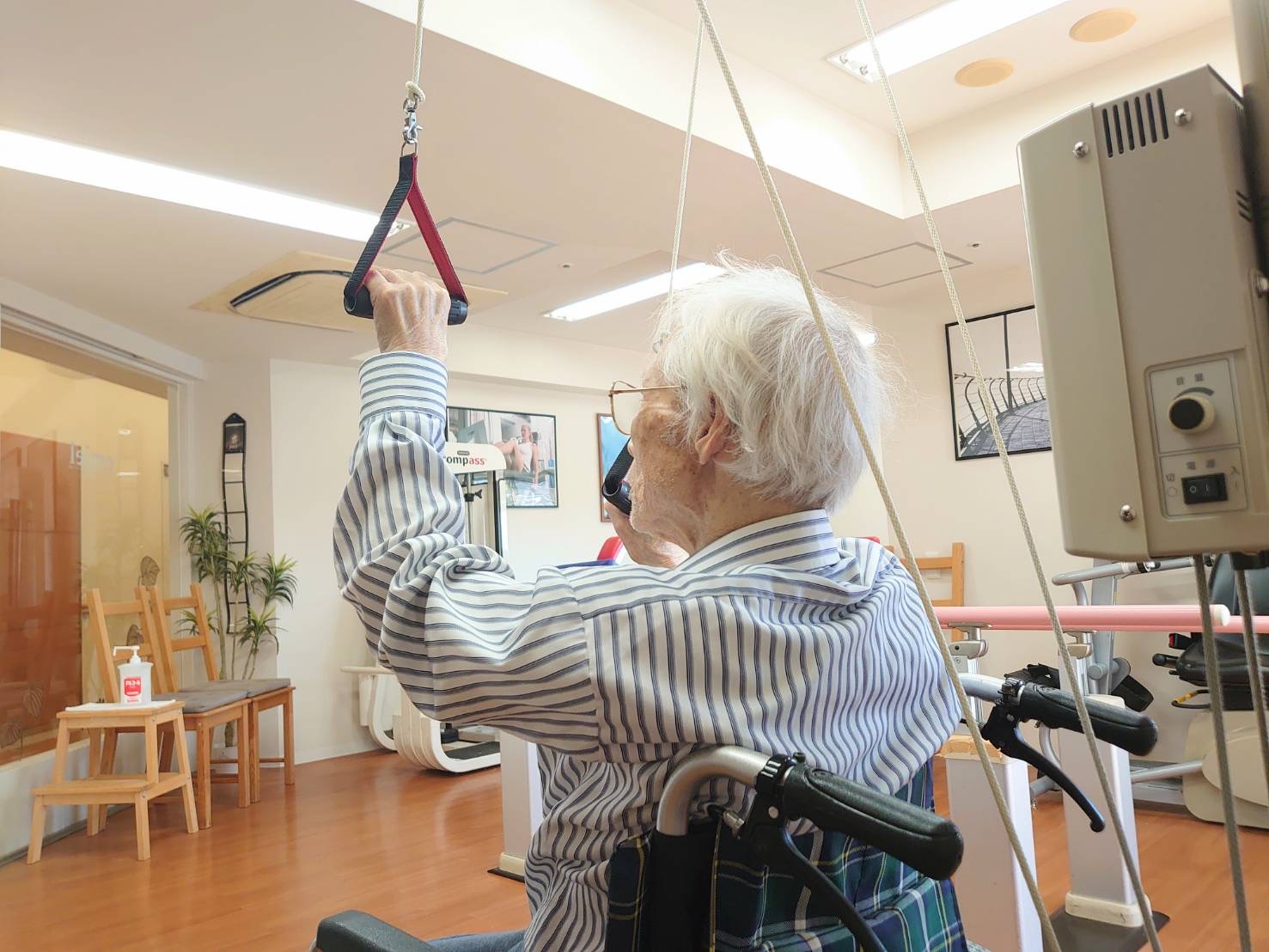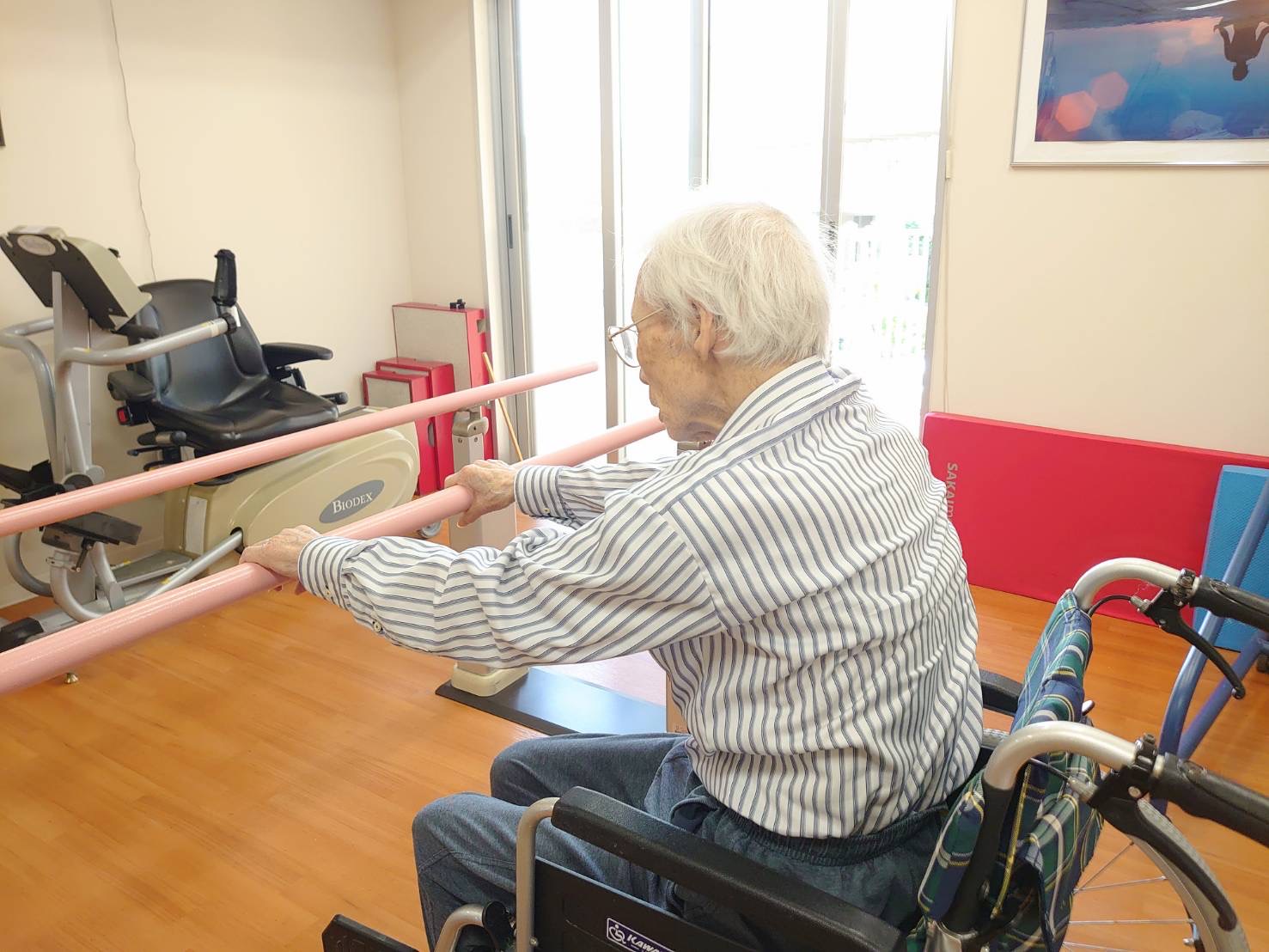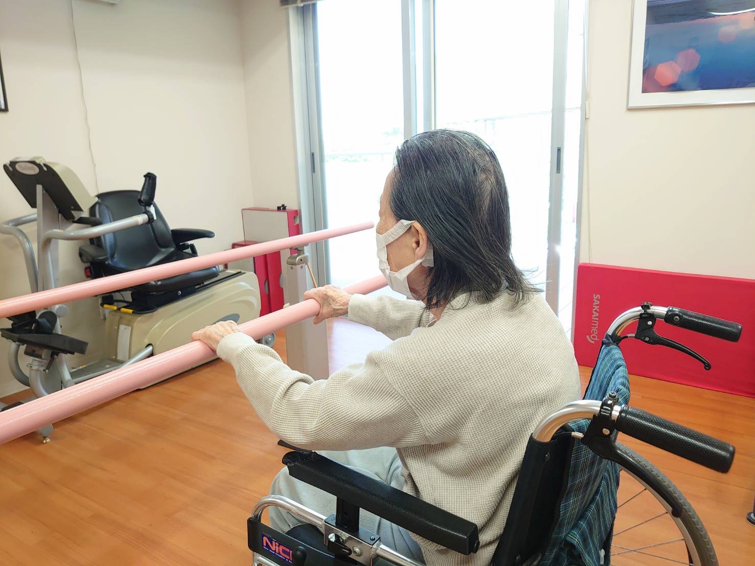 長い廊下をゆっくりとしっかり手すりを使って歩きます。
