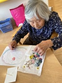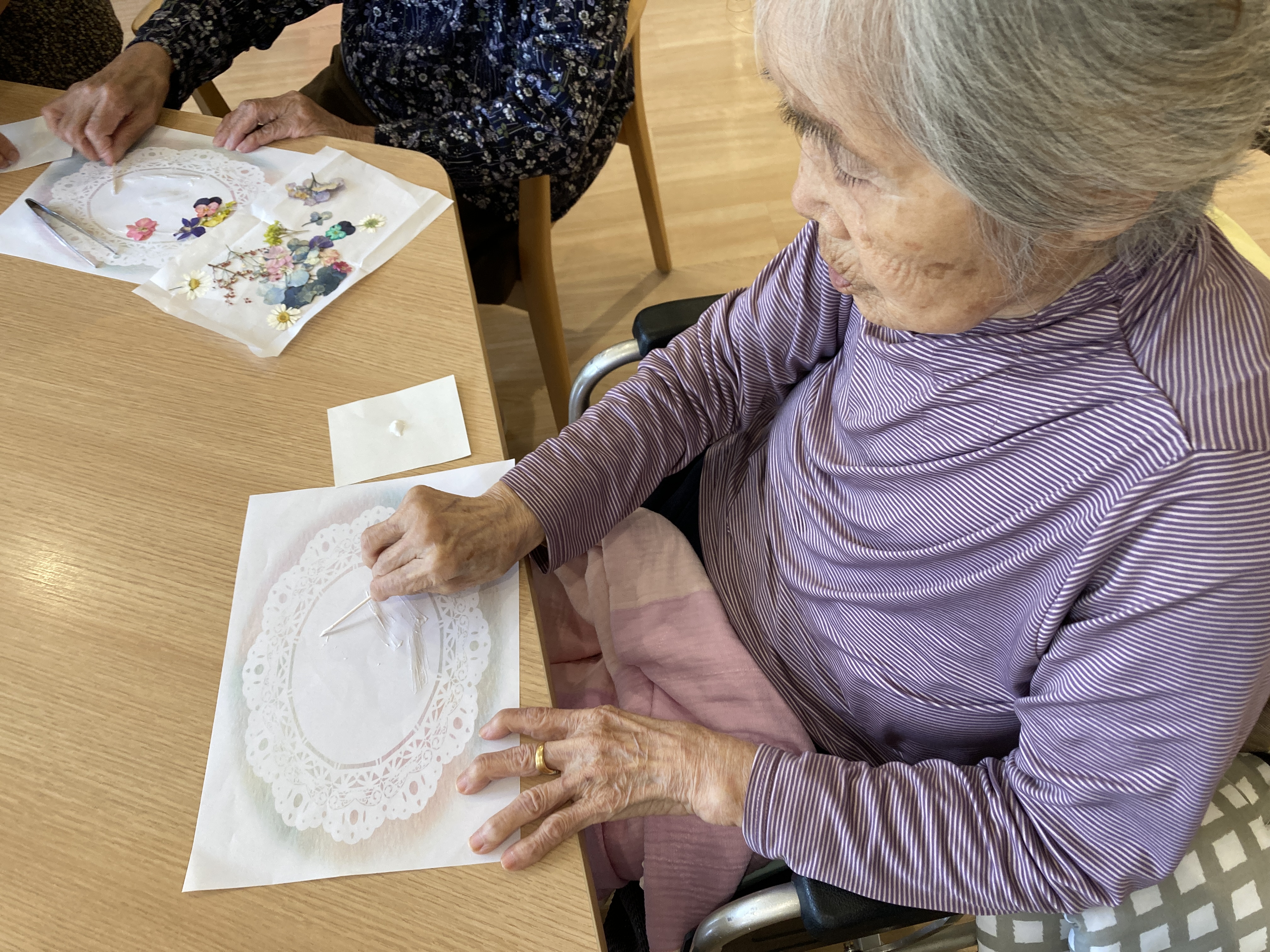 今日は押し花の先生をお招きして素敵な作品を作って頂きました。皆さんセンス抜群ですね。手先も器用に繊細な作品が出来上がりました。すばらしい👏