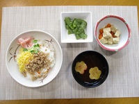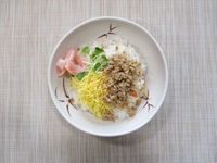 「甘めの鶏そぼろと寿司酢のご飯でさっぱり。彩りも良く、視覚からも食欲をそそるわ。」