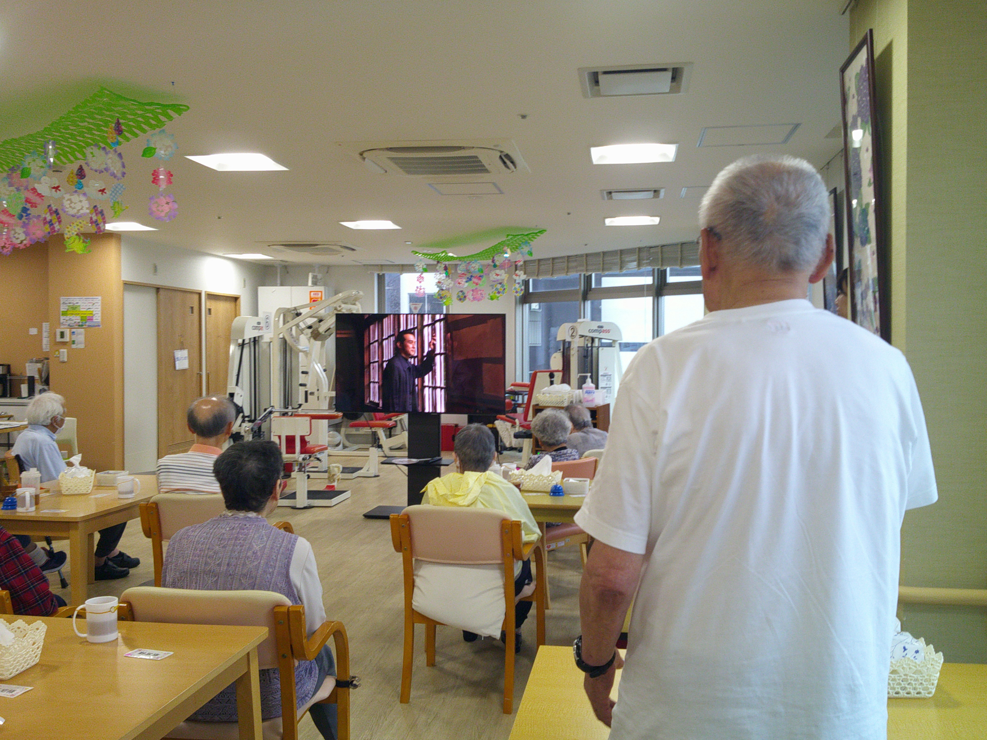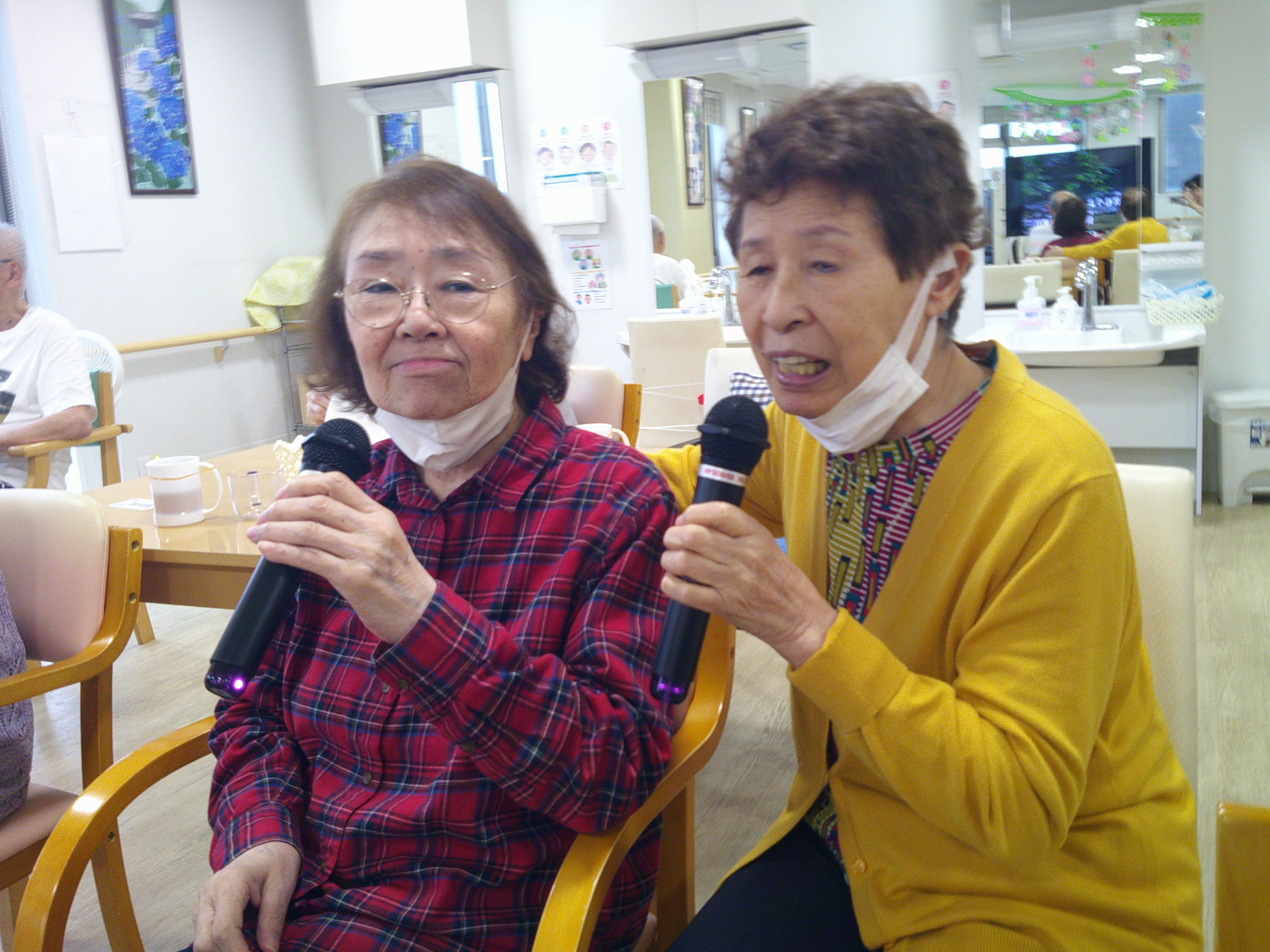 懐かしの名曲から最近の人気曲まで、スタッフと一緒に楽しく歌われ、デュエットで盛り上がる場面もありました。笑顔と笑い声のあふれる、にぎやかな午後となりました