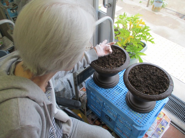 今日は曇り空で時々雨が降っていました☔なので、芋掘りはちょっとお休みし【ひまわり】の種を植えていただきました🌱種が小さいのでとても慎重に…ひとつずつ丁寧に植えてくださいました‼開花が楽しみですね🌻