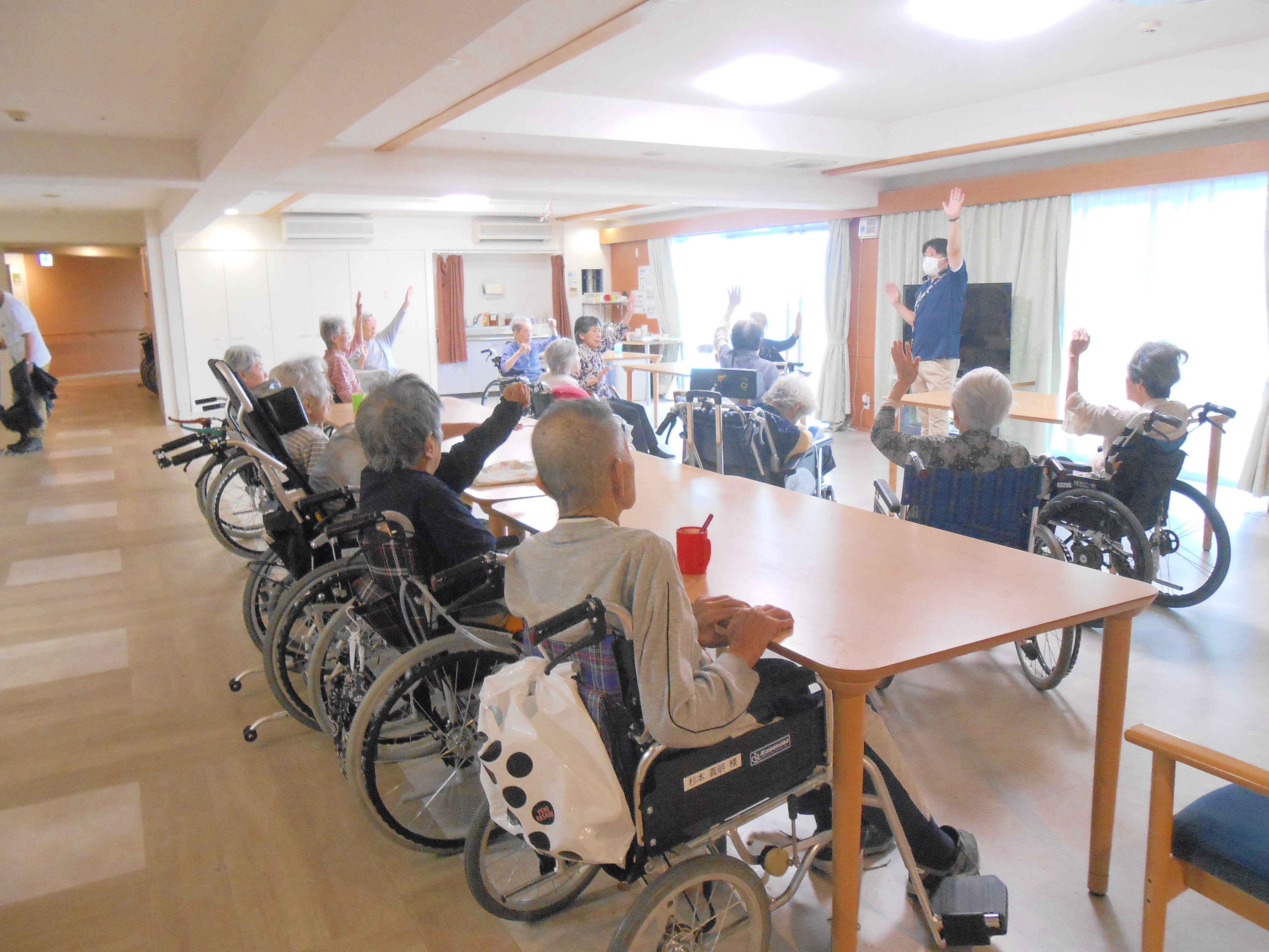 今日のレクは棒倒し!皆様器用に棒を倒さないように
